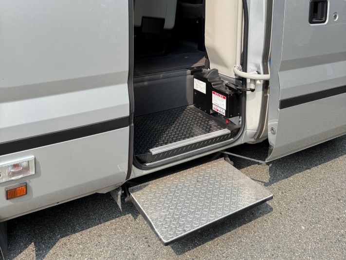 送迎バスの乗り口には電動ステップを完備しております。特にご宴会では地域の高齢者の方のご利用も多く、無料の送迎サービスにお喜びいただいております。