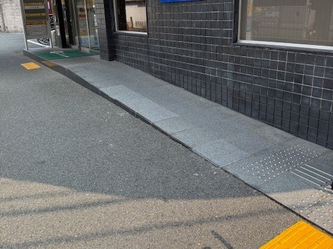 玄関エントランスには体の不自由な方や車いすの方にでもアプローチしていただきやすいようにスロープ施工の上、視覚障害をお持ちの方にも安心して通行いただけるように点字ブロックを設置しております。